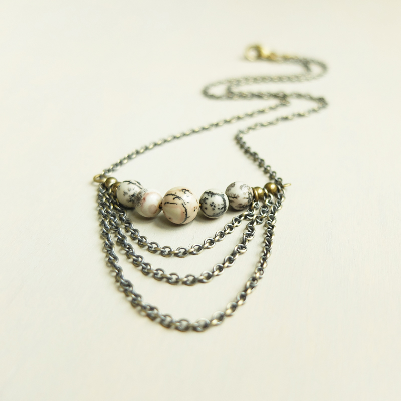 I’ve been making jewelry since I was a little girl. I would sell in it front of my house on a TV tray along with lemonade, popsicle stick boxes, shells, and rocks that I had collected (some of which were found at the park directly across the street from my house!). My style, materials, and interests…