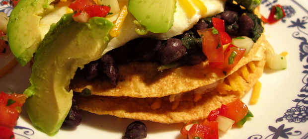 Filed Under: Food Tagged With: avocado, black beans, black pepper, Breakfast, brunch, cheddar, cheese, cinnamon, cumin, egg, el ranchero, huevos, no onions, salsa, spinach, tomato, tostada