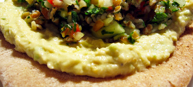 Filed Under: Food Tagged With: bulgur, chickpea, cilantro, cucumber, edamame, garlic, hummus, jalapeno, lemon, mint, no onions, olive oil, pita, salt, tabbouleh, tahini, tomato