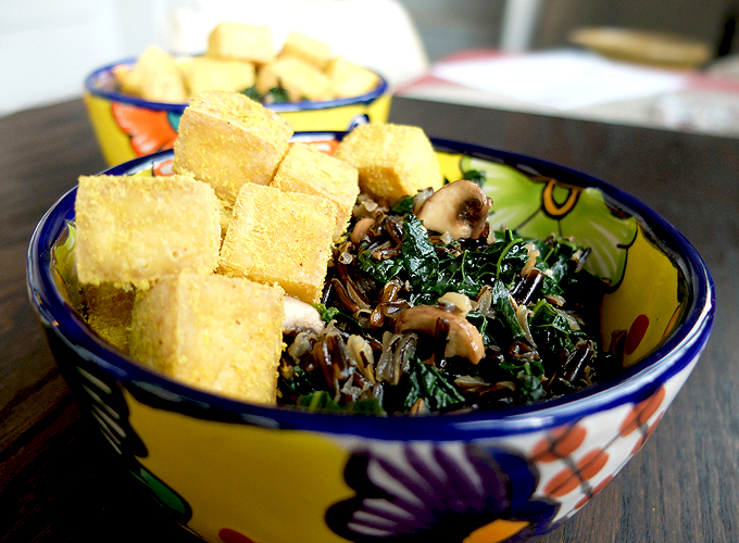 Filed Under: Food Tagged With: Dinner, fried eggs over dinner, kale, lacinato kale, Lunch, mushroom, mushrooms, nutritional yeast, tofu, truffle oil, wild rice