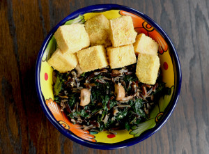 This is a go to dinner in our house, a few simple ingredients can make a perfect meal. While I love spicy and intensely flavored food, sometimes I’m just in the mood for a simple plate. This dish reaches the goal of simplicity while delivering a plenty of flavor. Wild rice mixed with truffle oiled, kale, and mushrooms topped with baked tofu.
